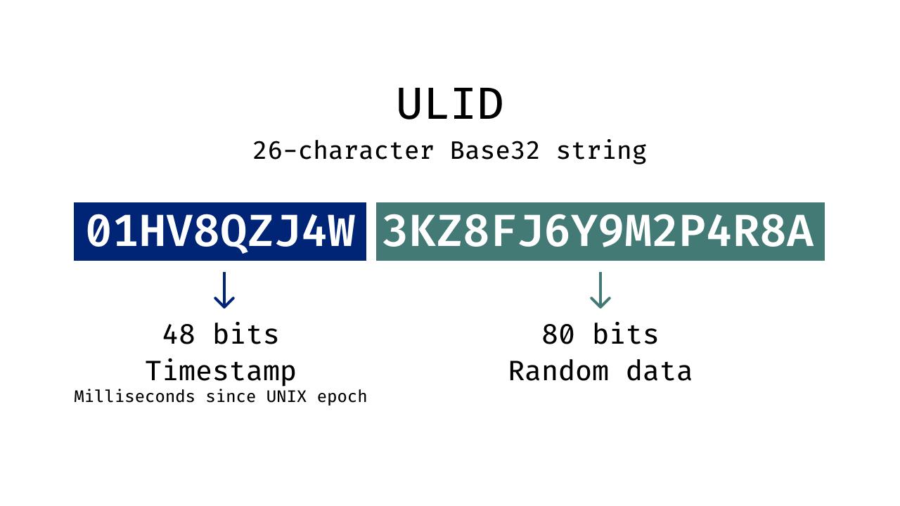 ULID 的結構會把毫秒精度時間戳放在識別碼前段,後段則是用來確保唯一性的隨機位元。