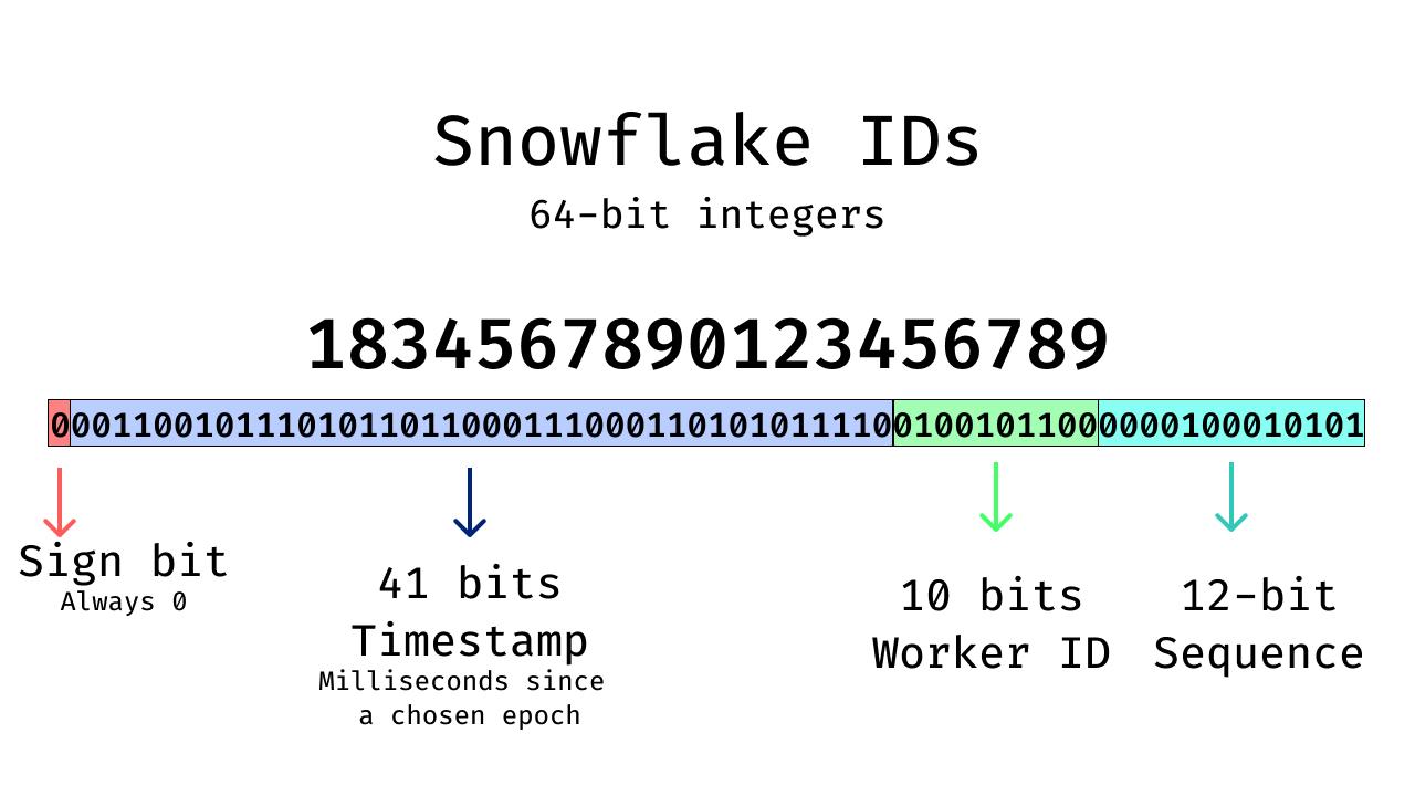Snowflake 風格識別碼對 ID 產生採取更結構化的方法。它最初是為了支援極高寫入吞吐而設計,將多段資訊編碼進緊湊整數中。