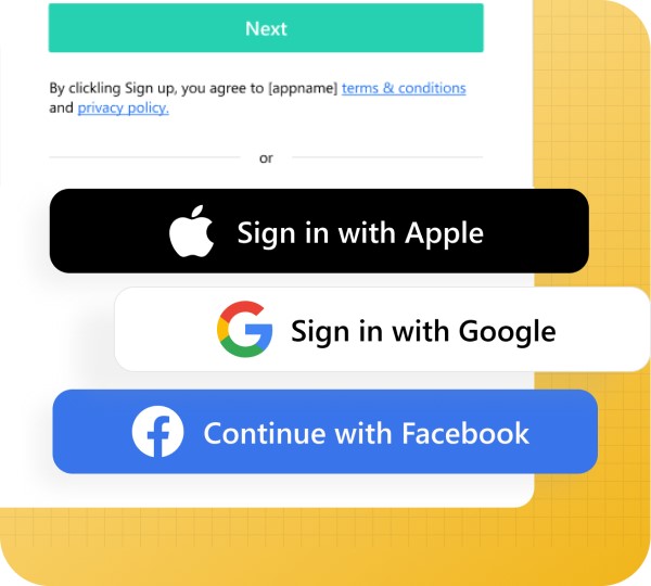 Equip your apps with a variety of frictionless authentication methods, such as passkeys, biometrics, WhatsApp OTP, social logins, etc., for users to easily sign up for and log into your apps without all the hassles related to passwords.